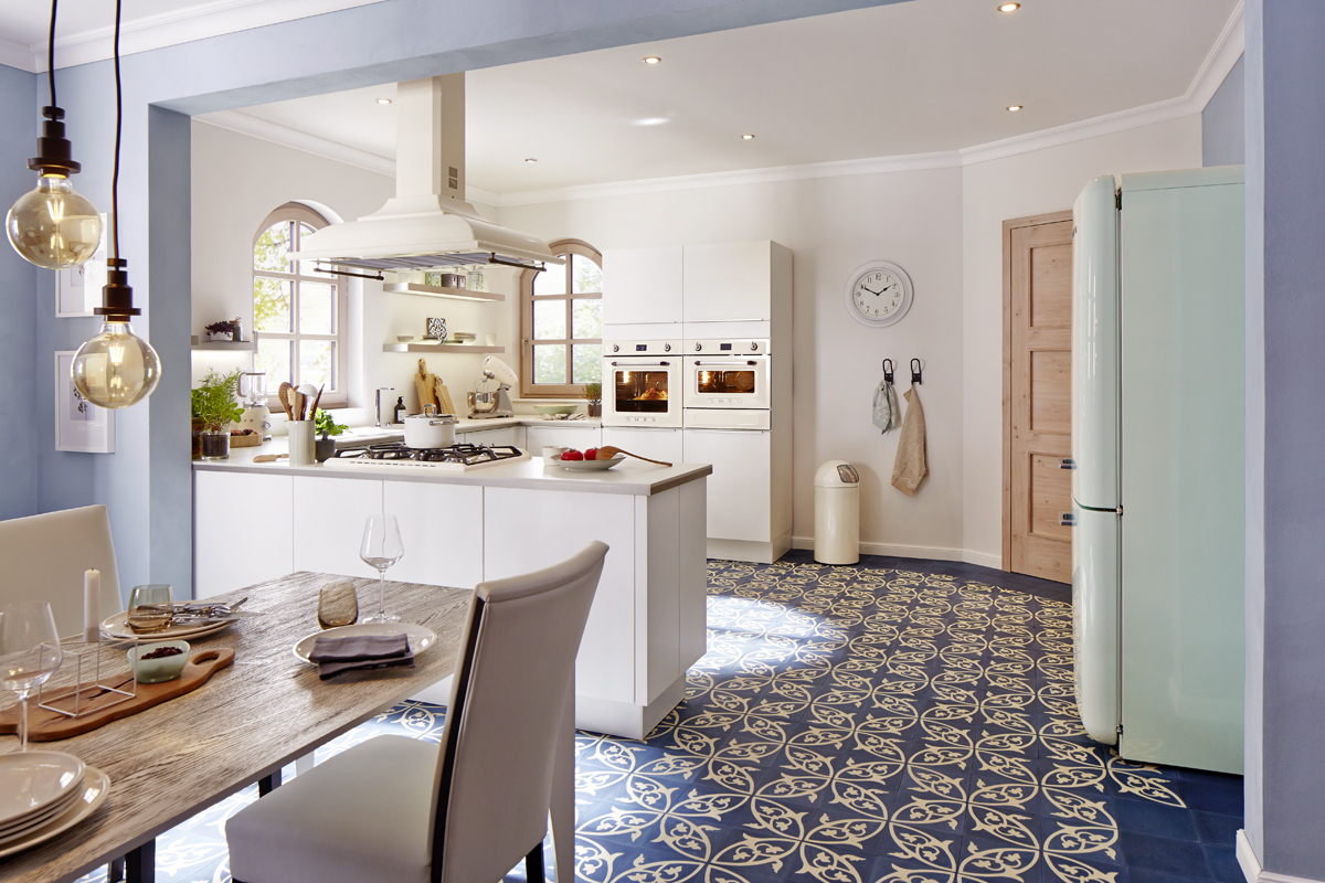 Secesné cementové dlaždice, ako je tento model, sú ideálne pre štýlové staré budovy, pamiatkovo chránené objekty alebo na cielené zvýraznenie moderných miestností s klasickým nádychom. Či už na podlahe alebo na stene – vzor dodáva miestnosti zvláštnu hĺbku.